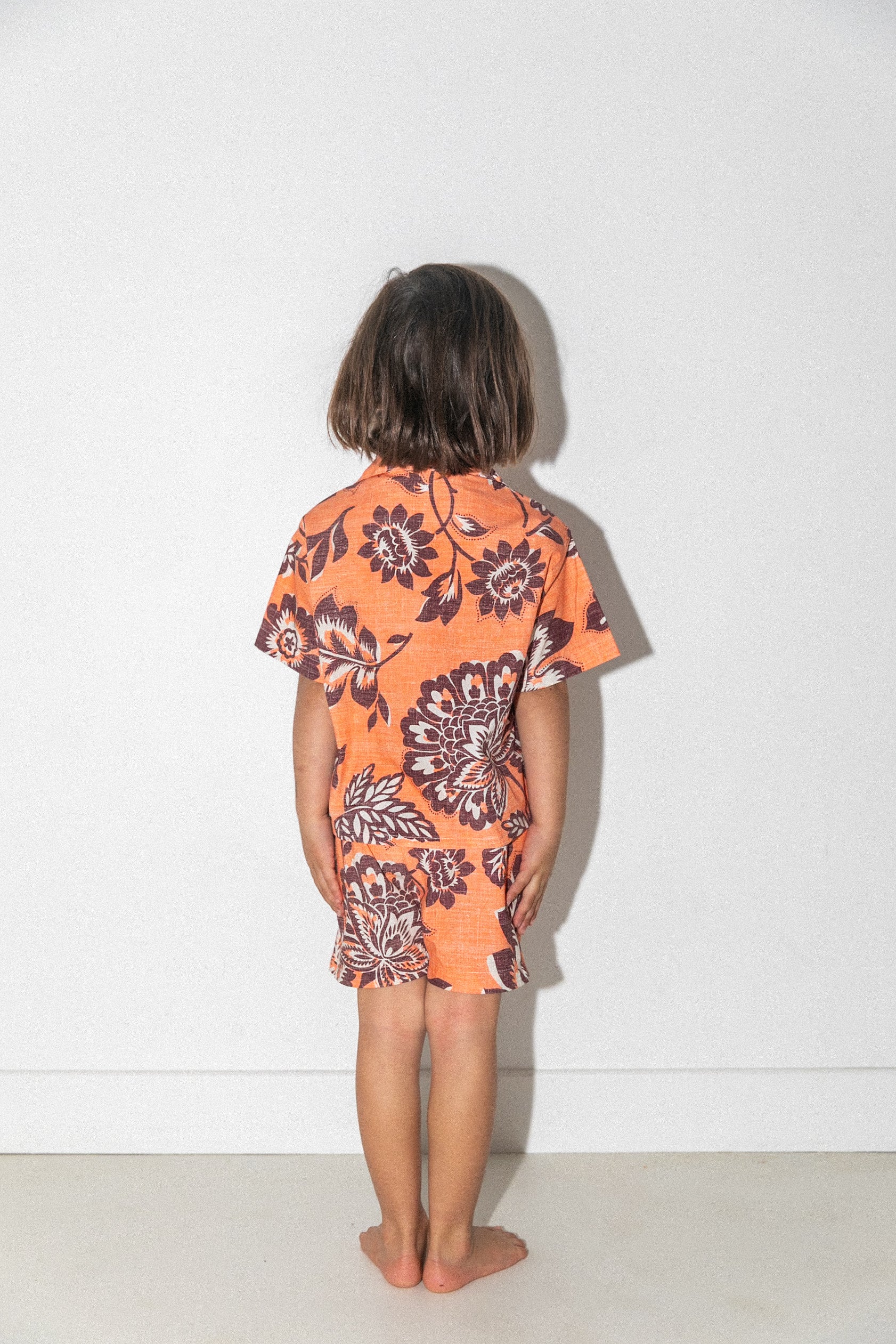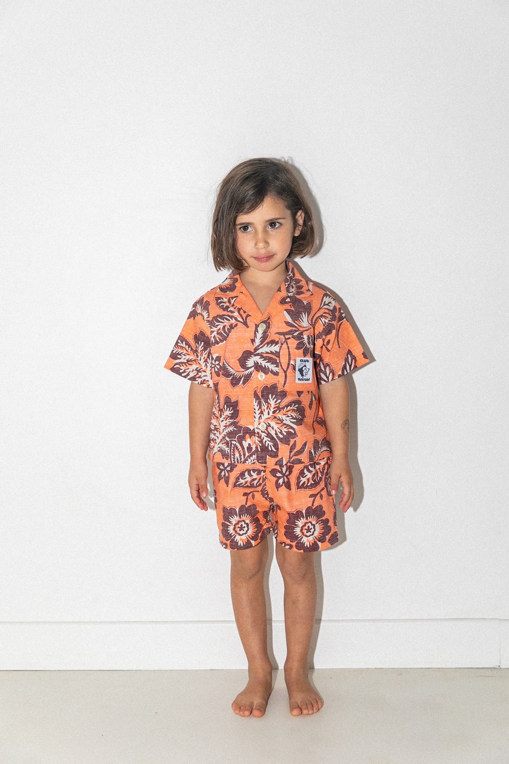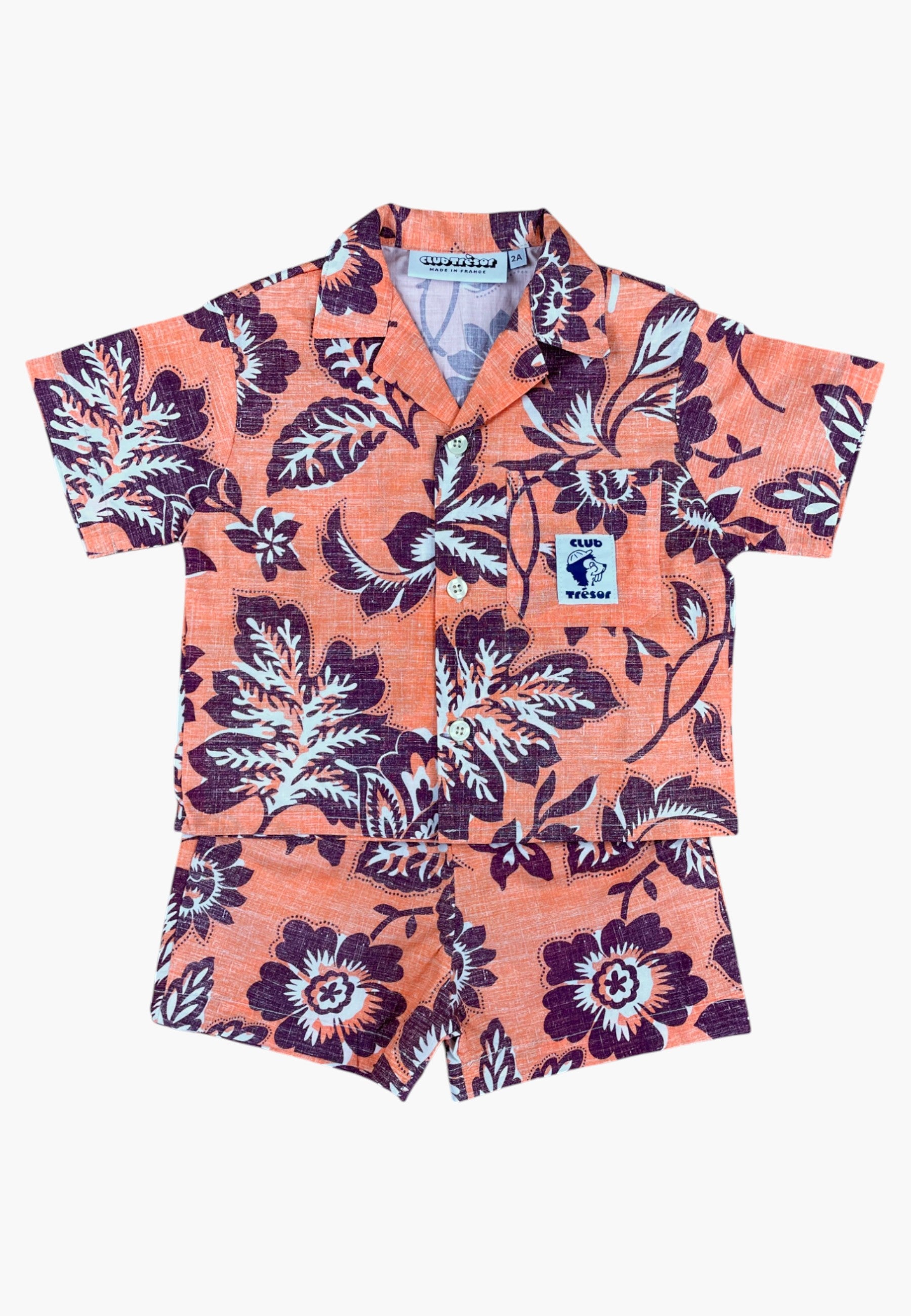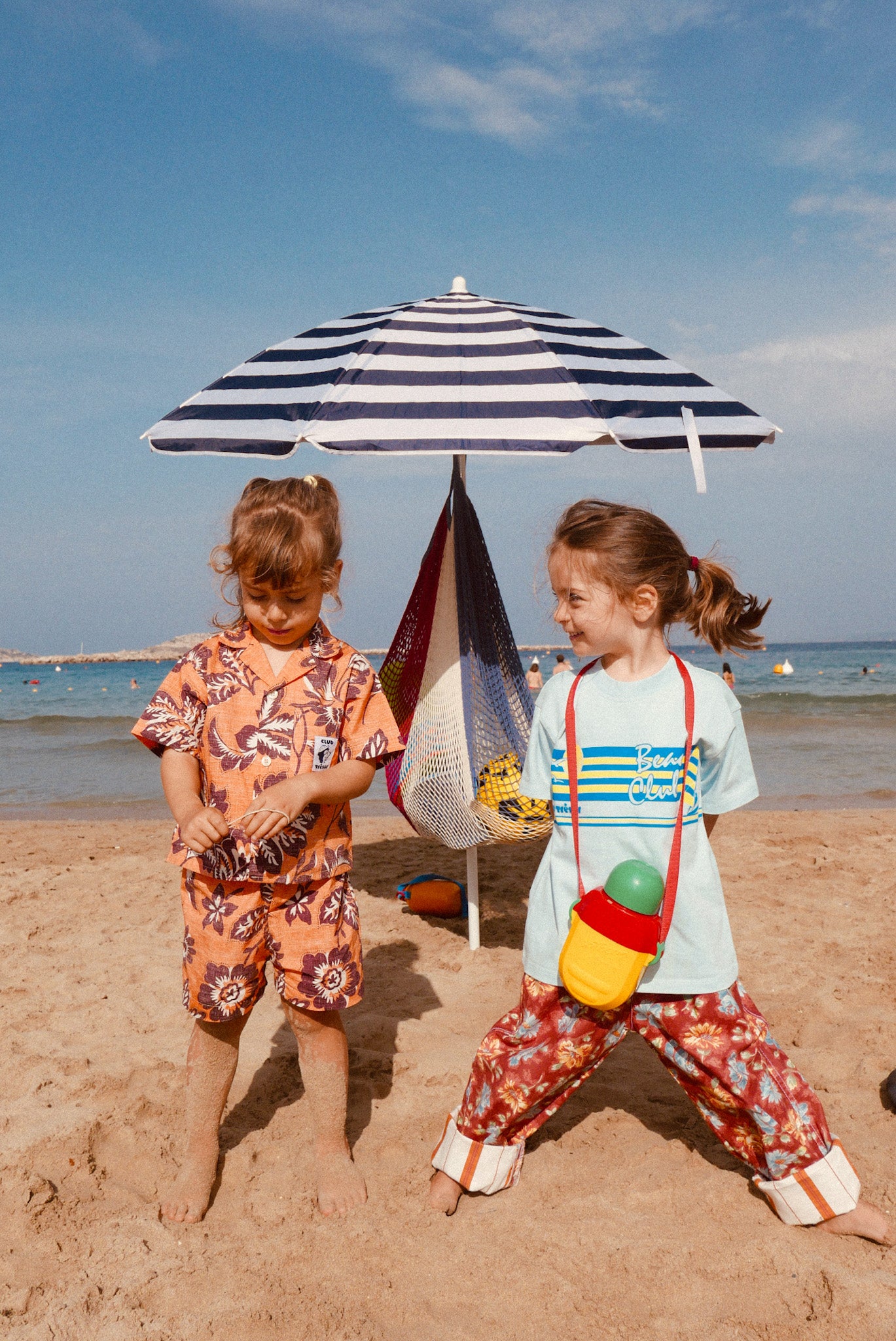 Made in France, in a Marseille workshop, using fabrics from dormant stocks dating from the 2000s to the present day, these garments combine comfort, style, and durability. The shirt is designed to be worn loose the first year, then more fitted the following year. The elastic waistbands of the shorts and skirt are stretchy and adaptable to different body shapes and ages.